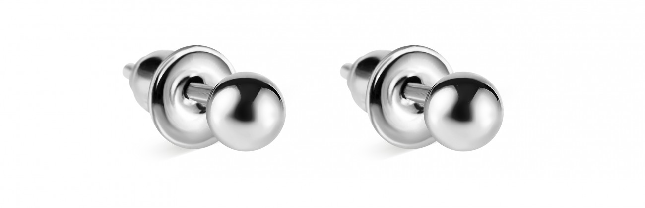Серебряные серьги-пуссеты ROLLO II – простое украшение для юношей и девушек в стиле современный минимализм. Подойдут для ношения как в основных, так и в дополнительных проколах. Без камней и вставок. Имеют декоративное и надежное защитное покрытие белым родием. Такое же покрытие используется в изделиях из белого золота 585 пробы. Родий – драгоценный металл платиновой группы и, нанесенный на поверхность украшения, позволяет сохранить его первоначальный вид, защищая от механических повреждений и потемнения. Толщина покрытия 10 мкм. Надеваются и застегиваются серьги так же, как серьги-гвоздики. Удобный и компактный силиконовый фиксатор в оправе из родированного ювелирного сплава позволяет просто и надежно зафиксировать украшение на любой мочке уха. Размер застежки 5,5х5 мм. Длина штифта для фиксации застежки 10 мм, диаметр штифта 0,8 мм. Более тонкий штифт, чем у стандартных винтовых застежек (1,2 мм) обеспечивает максимальный комфорт при надевании и ношении. Диаметр декоративной части (шарика) 4 мм. Минимальный вес 0,74 гр